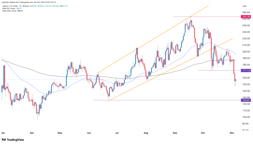 The daily timeframe chart shows that the Solana price has been in a strong downward trend in the past few months, moving from a high of $253 to $150.