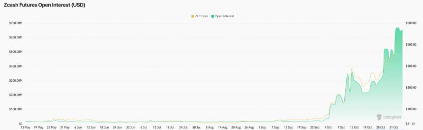 Zcash‘s rally didn’t happen in isolation. Over the past year, privacy tokens have surged amid a broader backlash to global surveillance measures, from the EU‘s MiCA digital ID rules to the UK’s>Grayscales Zcash Trust (ZCSH) returned 90% in September alone, while open interest in ZEC has reached a new all-time high of nearly $700 million.
