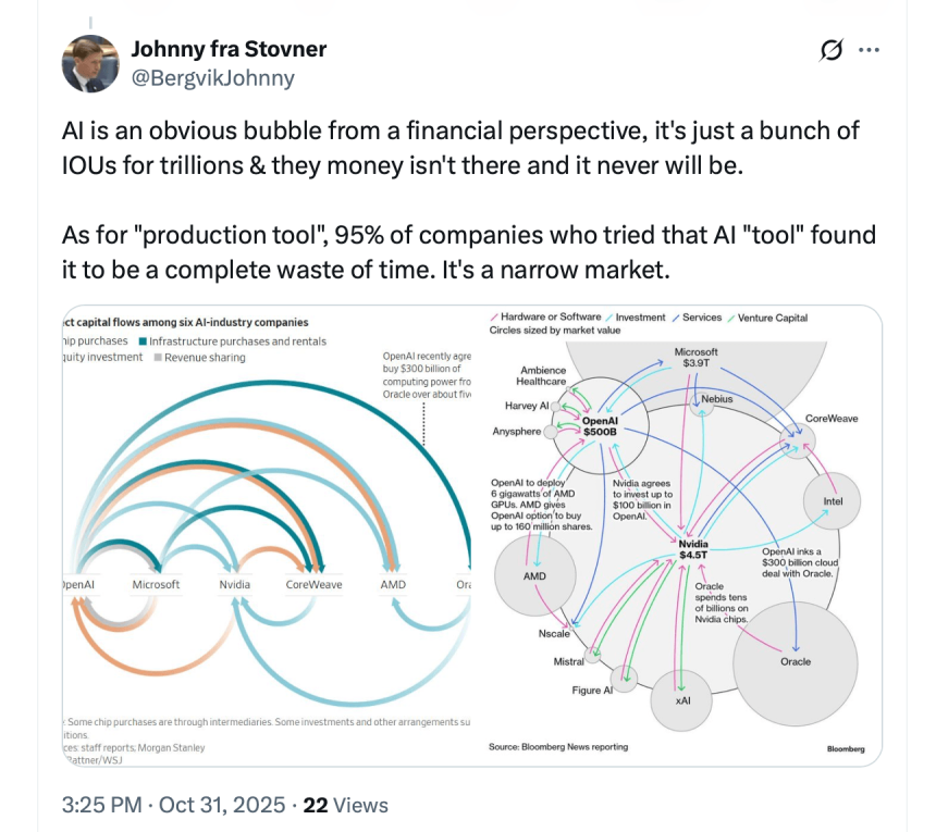 WikiBit 2025-11-06 05:03Global markets are wobbling as Wall Street wakes up to the idea that the artificial intelligence boo