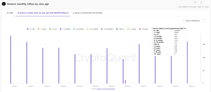 Over 25.9K BTC flowed into Binance in October, coming from newly created wallets. In 2025, spot inflows to Binance coincided with more dramatic price moves for BTC. As Cryptopolitan reported earlier, spot markets also offered a safer toolset for trading BTC, while the price remained unpredictable.