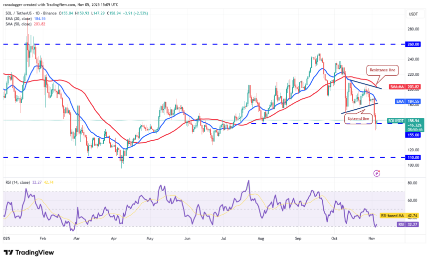 Solana (SOL) fell below the $155 level on Tuesday, but buyers are attempting to reclaim the level on Wednesday.