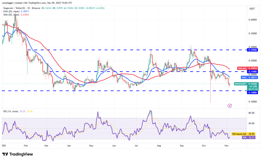 Conversely, if the price turns down from the 20-day EMA, the bears will again strive to pull the pair below the $0.14 support level. If they can pull it off, the Dogecoin price could retest the Oct. 10 intraday low of $0.10.