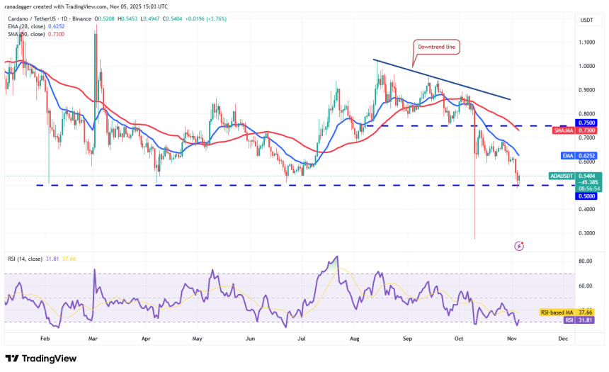 The bulls will have to push the price above the 20-day EMA ($0.62) to weaken the bearish momentum. If they manage to do that, the ADA/USDT pair could climb to the 50-day SMA ($0.73).