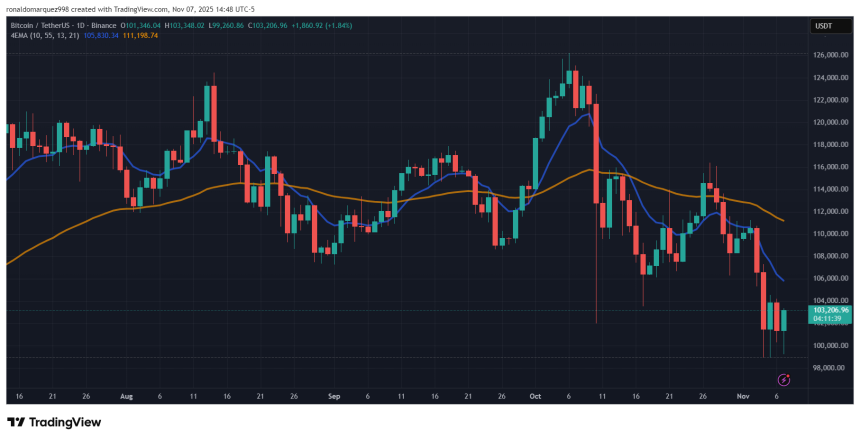 When writing, Bitcoin managed to recover above the $103,000 mark. Yet, the leading crypto is still 18% below all-time high levels of $126,000 reached just days before the infamous market crash on October 10.