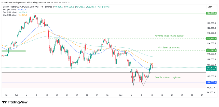 Bitcoin (BTC) staged a textbook double bottom pattern over the weekend, leading BTC to secure a bullish weekly close above its 50-week moving average. The formation coincided with the daily order block between $98,100 and $102,000, where BTC repeatedly tested the $100,000 zone before rebounding.