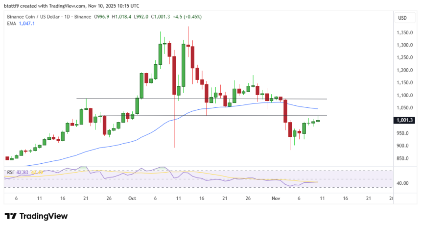 WikiBit 2025-11-11 04:02BNB price is off recent lows and could target a breakout to a new all-time high.BNBs retest of $1,00