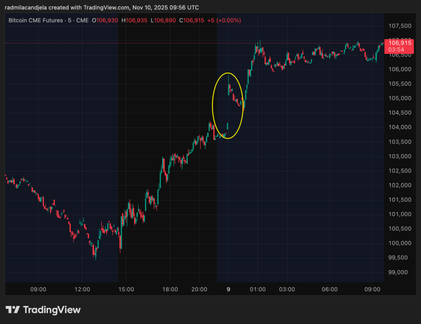 Bitcoin traders are monitoring the latest CME futures gap between Friday‘s close at $104,160 and Sunday’s open at $110,370.