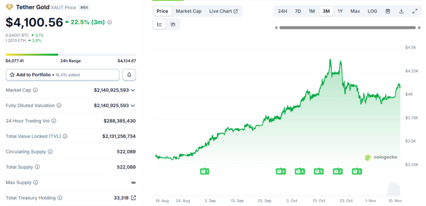 WikiBit 2025-11-12 07:02USDT stablecoin issuer Tether is deepening its exposure to physical gold as global monetary dynamics