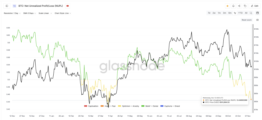 At the same time, NUPL — a metric that shows whether holders sit on unrealized profit or loss — has dropped to about 0.44. This is near the lowest zone since April 8, when NUPL touched 0.42 and marked the exact cycle bottom. After that, Bitcoin rallied from about $76,700 to above $116,900 by late May. Thats almost a 53% surge.