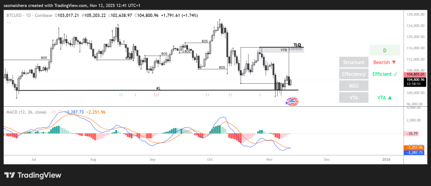 Bitcoin, the leading cryptocurrency by market cap, is down by less than 1% in the last 24 hours and is set to reclaim the $105k level if the recovery continues.