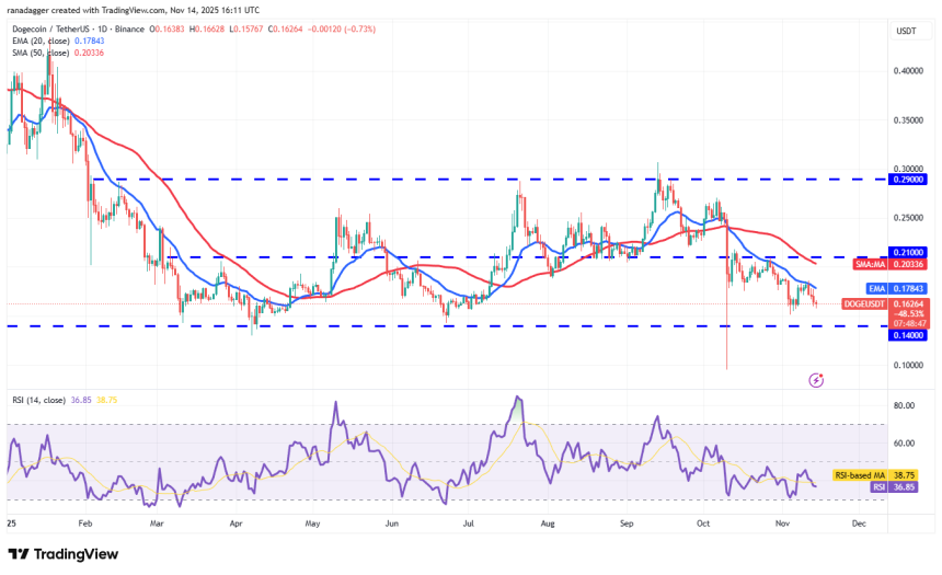 Buyers have an uphill task ahead of them. They will have to swiftly push the Dogecoin price above the 20-day EMA ($0.17) to suggest that the selling pressure is weakening. The DOGE/USDT pair may then rally to $0.21. A close above the $0.21 resistance indicates that the pair may extend its stay inside the range for a few more days.