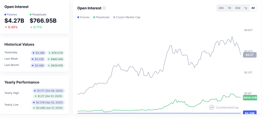 The crypto futures market is enormous. On Monday, open interest on perpetuals in the crypto market was about $767 billion, according CoinMarketCap data.