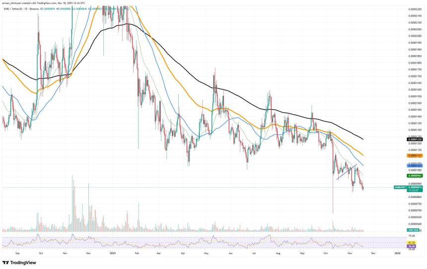 Usually, it indicates that holders are setting themselves up to sell. This is taking place while Shiba Inu is still on a downward trend and has not broken any significant resistance levels. SHIB is still clearly below the 50-, 100- and 200-day moving averages on the chart.