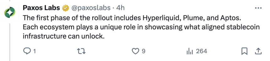 Paxos Labs said the initial rollout showcases how different networks can plug into the stablecoins economics. On Hyperliquid, USDG0 will support yield-aligned trading and new lending markets, while Plume and Aptos plan to use it to power modular DeFi, tokenized yields and enterprise-grade stablecoin rails.