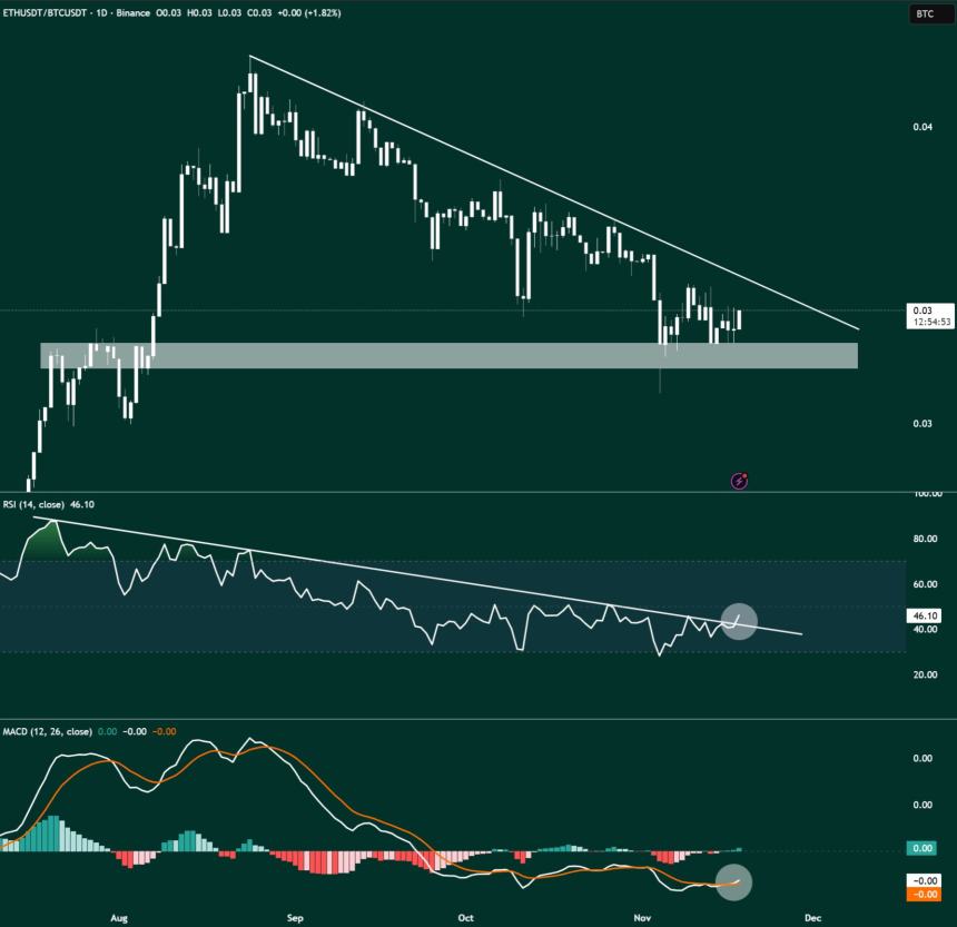 Historically, this is a positive indicator because, when ETH/BTC turns bullish, altcoins often witness a rally as Ethereum is one of the main indicators of altcoin market strength.