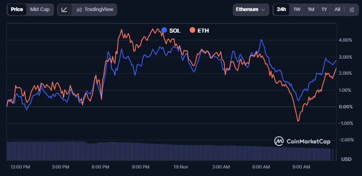 Solana continues to expand as a blockchain powerhouse, whereas Ethereum maintains its position as the second-largest cryptocurrency project.