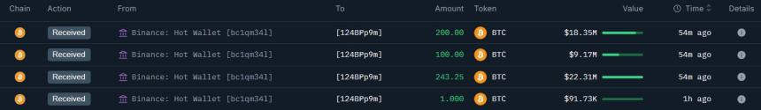 According to Onchain Lens, a dormant Bitcoin whale became active again after a two-month hiatus. Specifically, the holder withdrew 544.25 BTC from Binance, an amount worth $49.84 million at the time of transfer. Following the withdrawal, the wallets total balance rose to 552.87 BTC, worth approximately $50.7 million.