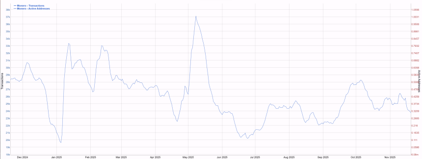 Yet Monero‘s throughput has held in its usual 20,000 to 30,000 daily transaction range, with no parallel rise in activity. That stability reinforces the idea that ZEC’s move is not part of a sector-wide shift into privacy, but a Zcash-specific rotation driven by its liquidity profile, shrinking visible supply, and an improving shielded-UX narrative.