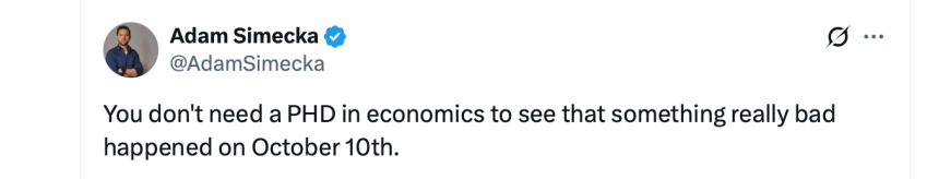 Fundstrat‘s Tom Lee stressed this week that this event “really crippled market makers,” leaving them with less capacity to stabilize order flow. A market without deep liquidity is a market that falls faster than expected, and that’s exactly what happened. The long positioning across the market only intensified the slide.