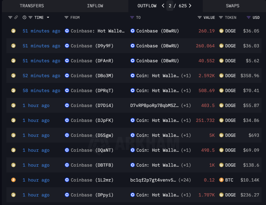Coinbase shifts funds to other wallets controlled by the exchange. Source: Arkham Intelligence