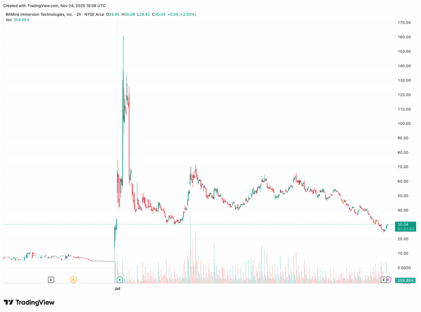 BitMine Immersion Technologies (BMNR) has amassed 3% of ether‘s (ETH) circulating supply, but its focus on the world’s second-largest digital asset hasnt differentiated its returns from its dismal peers.
