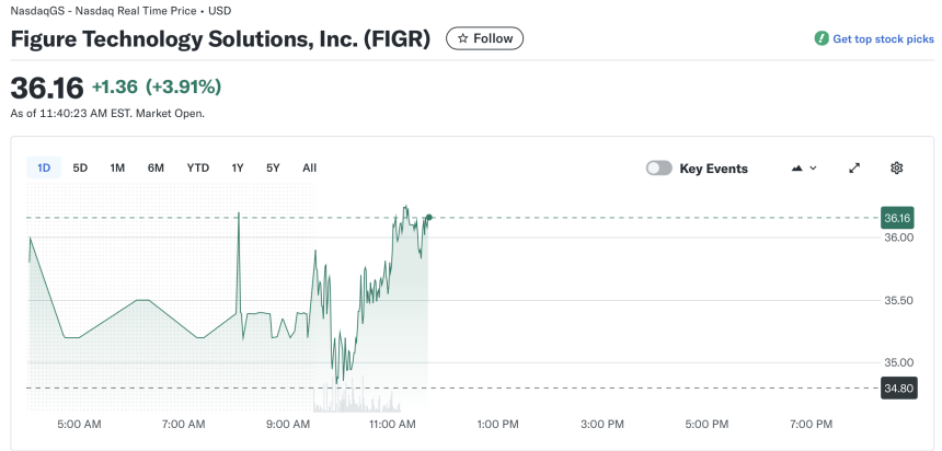 Figures stock price was up nearly 4% in early trading on Monday, according to Yahoo Finance data.