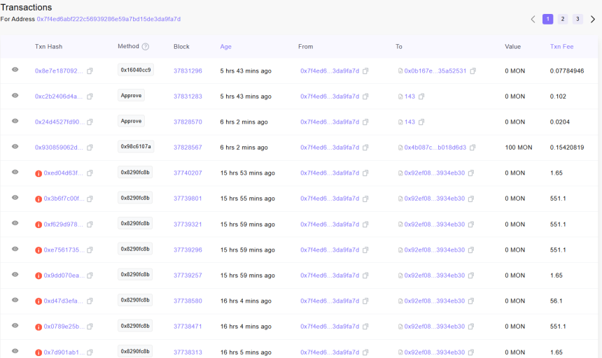 “Congratulations to 0x7f4e...fa7d who managed to spend their entire Monad airdrop (112.7k) on failed txn fees,” wrote crypto investor Joe, in a Monday X post.