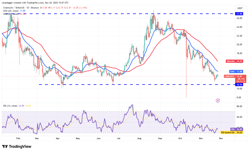 Chainlink (LINK) has risen close to the 20-day EMA ($13.88), where the bears are expected to pose a strong challenge.