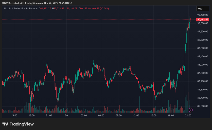 The cryptocurrency market has seen a strong recovery following the sharp decline experienced yesterday. Bitcoin (BTC) gave investors a breather today by rising above $90,000 after falling to as low as $81,000.