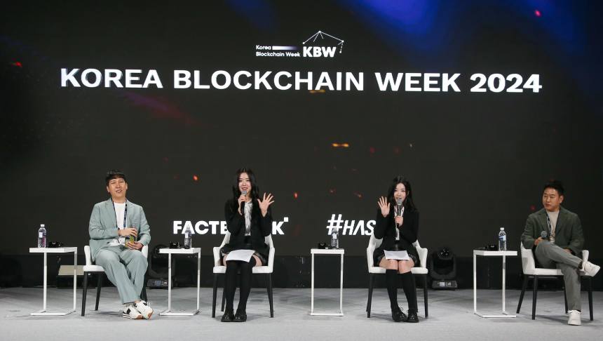 Koreas girl group tripleS took the stage at the 2024 Korea Blockchain Week. Source: Factblock