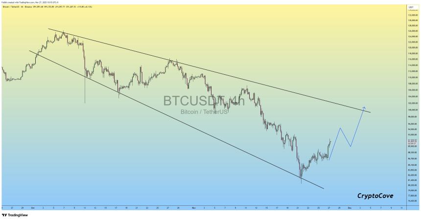 He highlights the $100,000 region as the key resistance level, arguing that BTC bulls need to reclaim this barrier to “regain strong bullish momentum.” Such a move, he adds, could pave the way for a sustained rally in December if the breakout is confirmed.