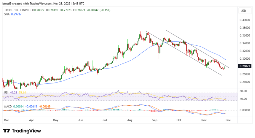 Still, TRON has managed a mild recovery from recent lows near $0.27, offering a tentative sign of strength despite the uncertain backdrop.