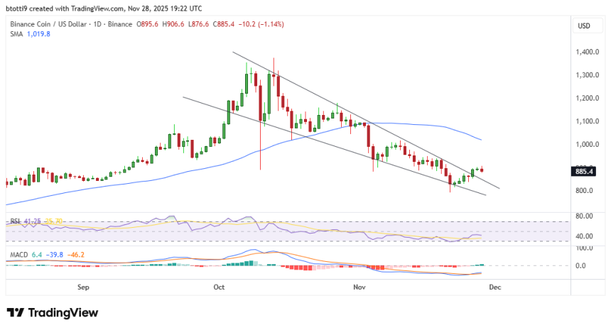 WikiBit 2025-11-29 05:02BNB traded above $880 as cryptocurrencies looked to bounce higher.The gains could see bulls target t