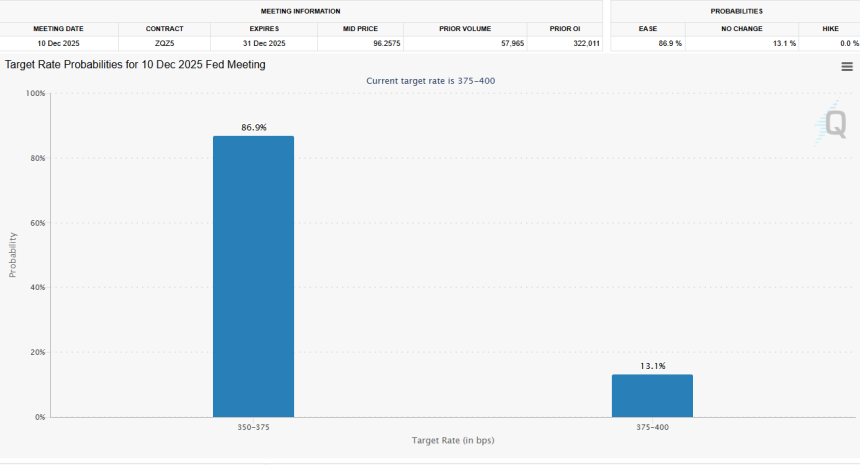Fed Rate Cut Probability For December. Source: CME FedWatch