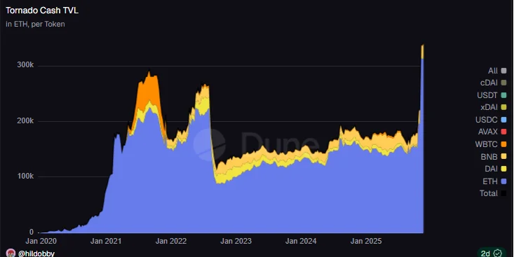 Railgun gained popularity during the recent revival of the privacy narrative. Railgun grew its asset pool, with $95M in value locked as of November 2025. The increased value signals a growing interest, as the mixer achieved $1.31M in fees for Q3.