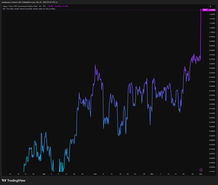 Bitcoin (BTC) experienced a sharp pullback in early Asian trading on Monday, dropping $85,500 amid increasing expectations of a December rate hike by the Bank of Japan (BoJ).