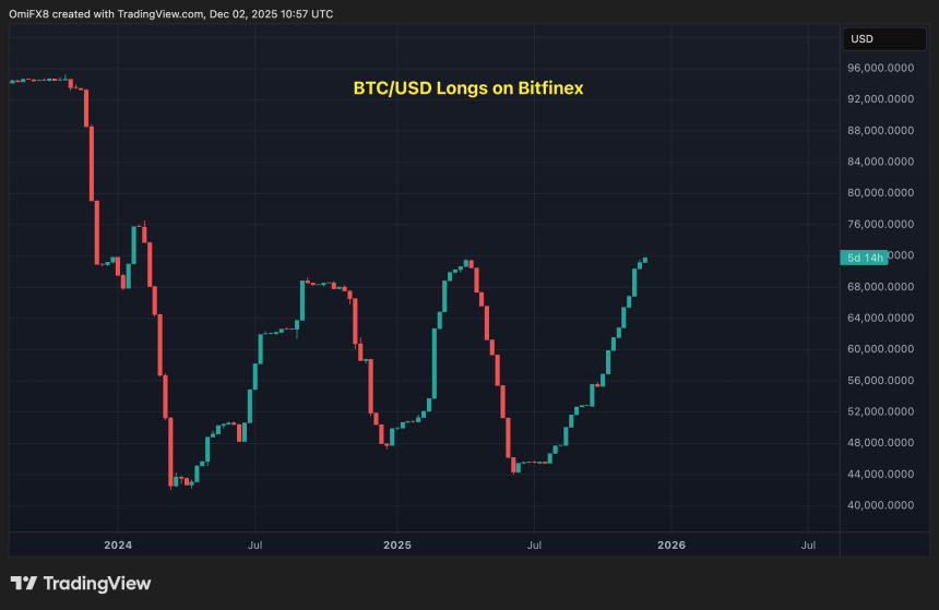 - The number of long positions in the Bitfinex-listed BTC/USD pair has risen to 71,809, the highest since February 2024.