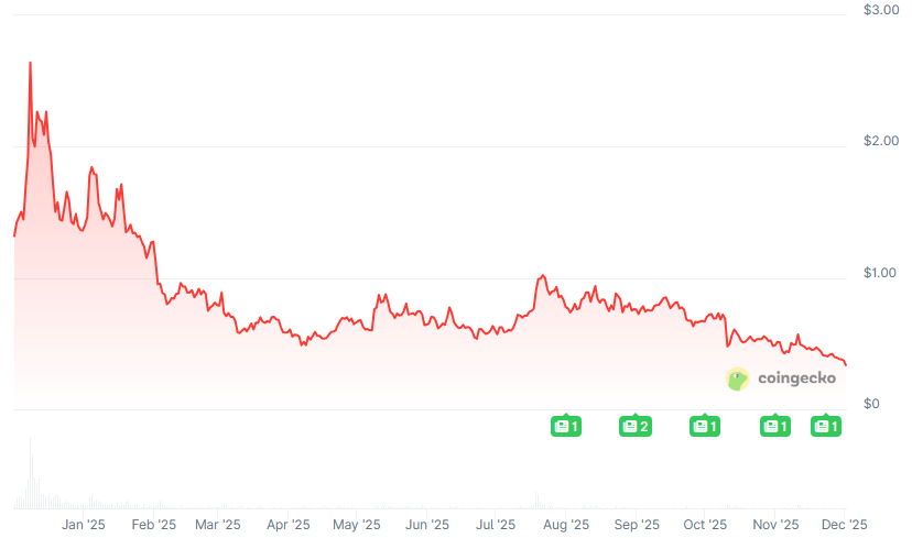 Sushis native token, SUSHI, is trading at $0.33, down 12% on the day amid a broader crypto market downturn that has persisted for several weeks. Over the past 30 days, SushiSwap has processed over $2 billion in DEX volume.