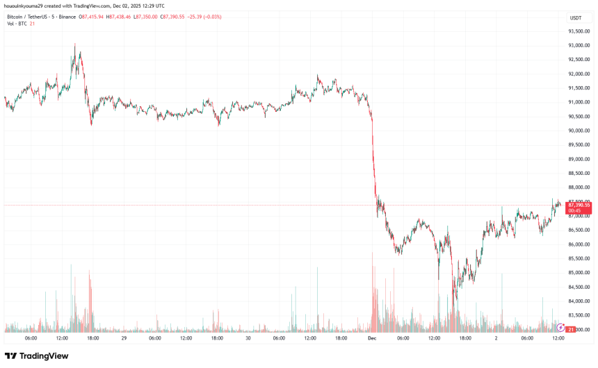 Bitcoin briefly slipped under $84,000 on Monday, but its price has since seen some recovery as its now back at $87,500.