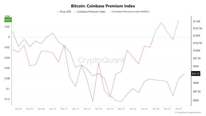 “Coinbase Bitcoin Premium Index just flipped positive again, showing fresh demand… US liquidity returning & the real move begins soon,” investor Money Ape commented.