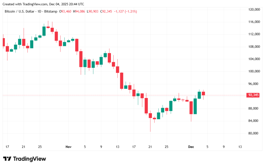 Bitcoin was trading at $92,222.31 at the time of reporting, down slightly from yesterday by roughly 1%, but still up 0.85% for the week, according to Coinmarketcap. The digital assets price moved between $90,976.10 and $94,060.77 over the past 24 hours.