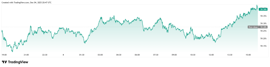 Daily trading volume fell 11.27% to $68.34 billion. Market capitalization stood at $1.93 trillion, and bitcoin dominance inched upward by 0.21% to reach 59.41%.