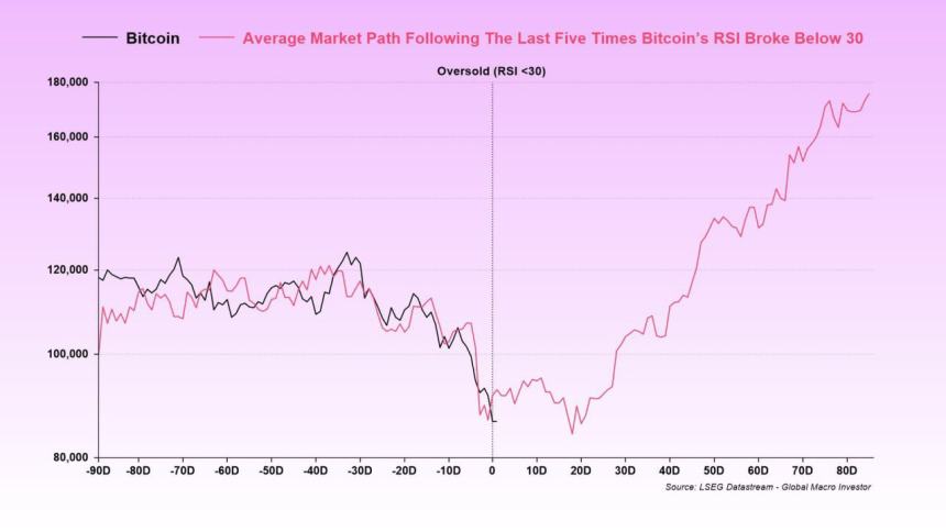 He notes that the average market path shown in his chart makes it clear that periods of oversold conditions have historically been followed by strong recoveries rather than prolonged weakness. According to Elja, if this pattern repeats, Bitcoin may have already bottomed out.