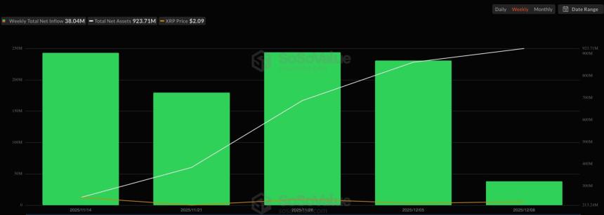 Meanwhile, the XRP price is reacting to the ongoing ETF inflows, which are now nearing the important milestone of $1 billion.