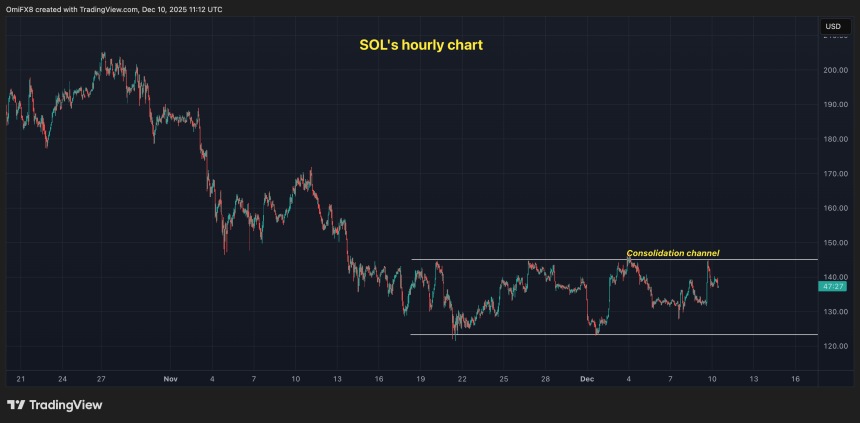 - Solanas native token continues to trade in a sideways channel, with $145 as the upper boundary and $125 as the lower boundary.