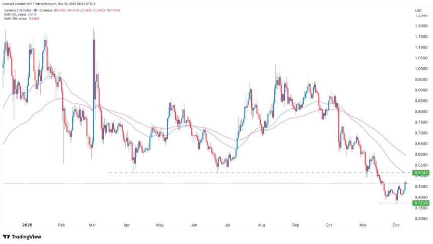 Cardano price held steady, reaching its highest point since November 19 as the crypto market rebounded. ADA jumped to a high of $0.4647, up by 25% from its lowest point this year. It also rebounded as Cardano launched Midnight, its zero-knowledge privacy network.