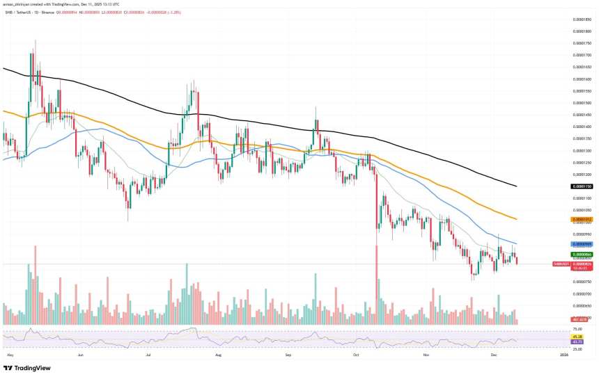 Although it is a simple headline to declare Shiba Inu's rally ending, the chart does not support that conclusion just yet. We are witnessing a market that is worn out, a structure that is unquestionably bearish, and momentum that consistently wanes whenever SHIB attempts to rise.