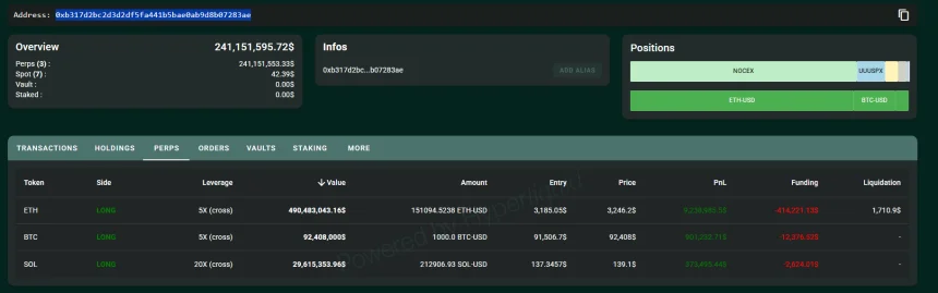 The whale that shorted BTC in October returned with an even larger long position, betting on a market recovery. | Source: Hyperliquid.