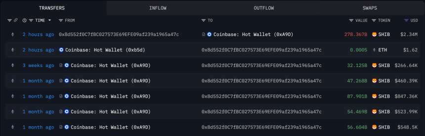 A big Shiba Inu wallet connected to Coinbase just sent 278,367,375,343 SHIB from its address, which was worth about $2.34 million at press time. As Arkham data records show, the address had been getting loads of SHIB in a few transfers throughout November, with 32.1 billion, 47.2 billion, 54.4 billion, 56.6 billion and 87.9 billion SHIB coming in, all from Coinbase hot wallets.