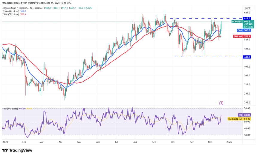 Buyers successfully defended the 50-day SMA ($535) in Bitcoin Cash (BCH), indicating a positive sentiment.